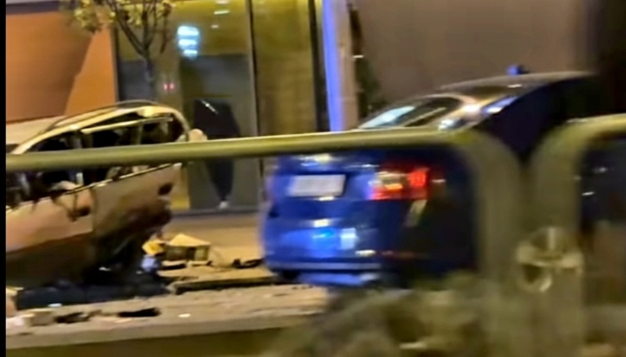A baleset következtében az egyik jármű a villamossínre borult.