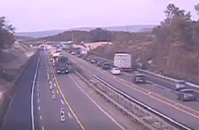 Személyautónak ütközött egy kamion a XI. kerületi Hunyadi János úton, a bevásárlóközpontnál.