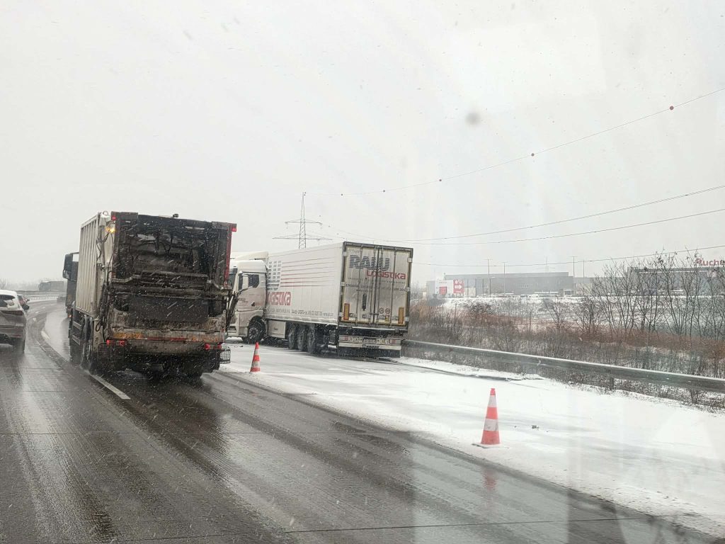 Egy kamion csúszott meg az M0-s autóúton, az M3-as autópálya felé vezető oldalon, a keleti szektorban, Maglód térségében a 47-es km-nél.