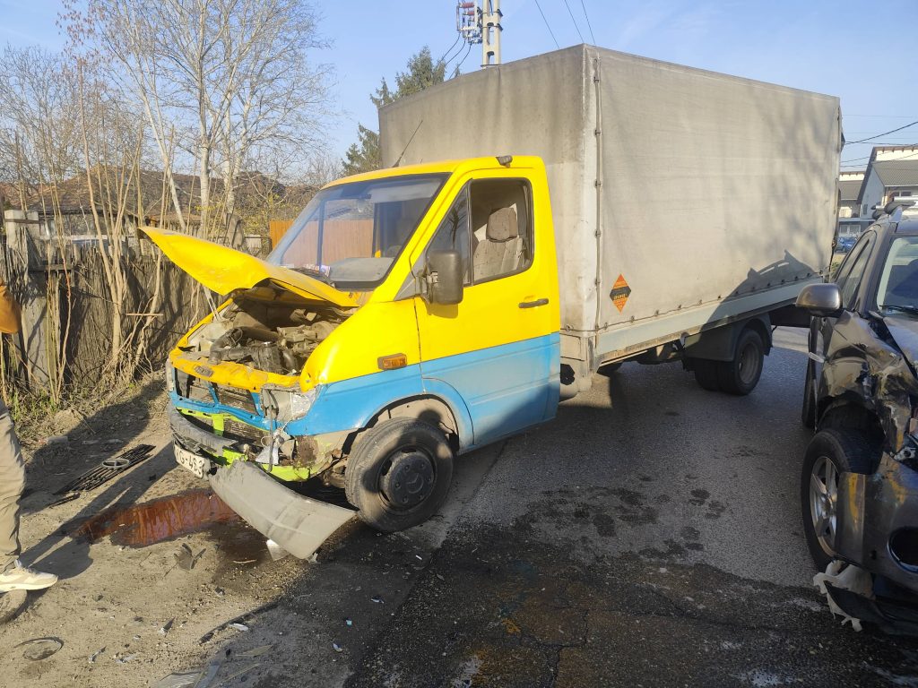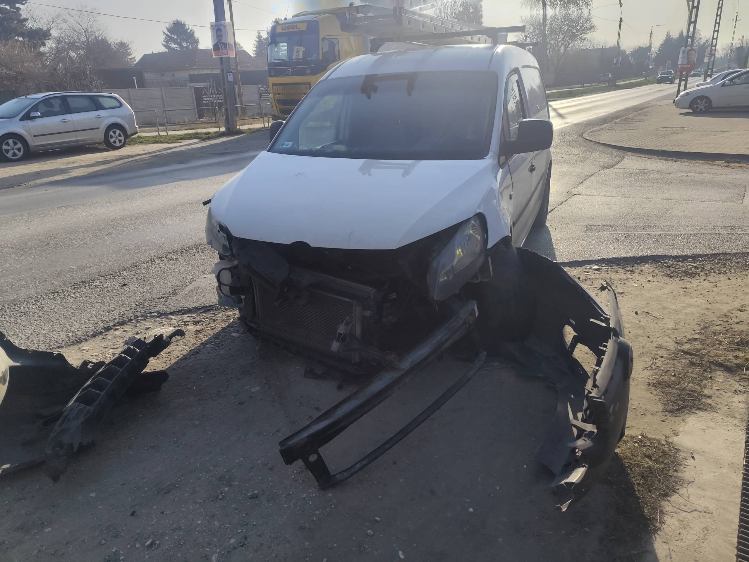 Az ütközés következtében a vétlen autó egy kisteherautónak sodródott.