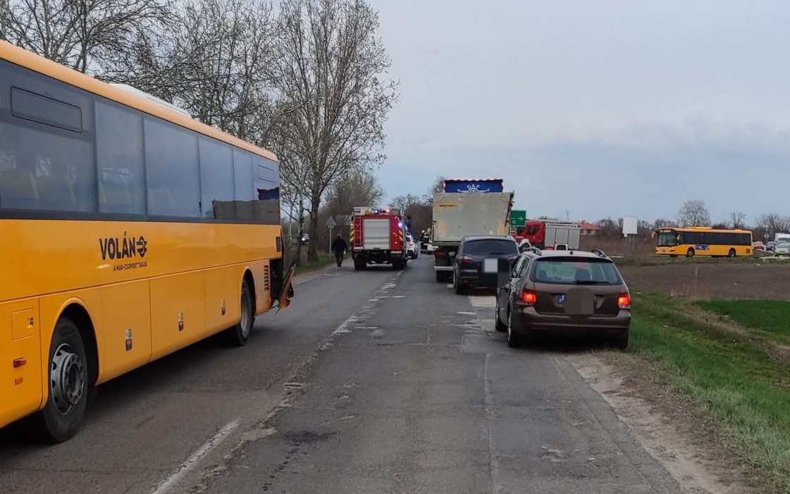 Az 51-es főúton, Tass térségében két személyautó és egy busz ütközött össze.