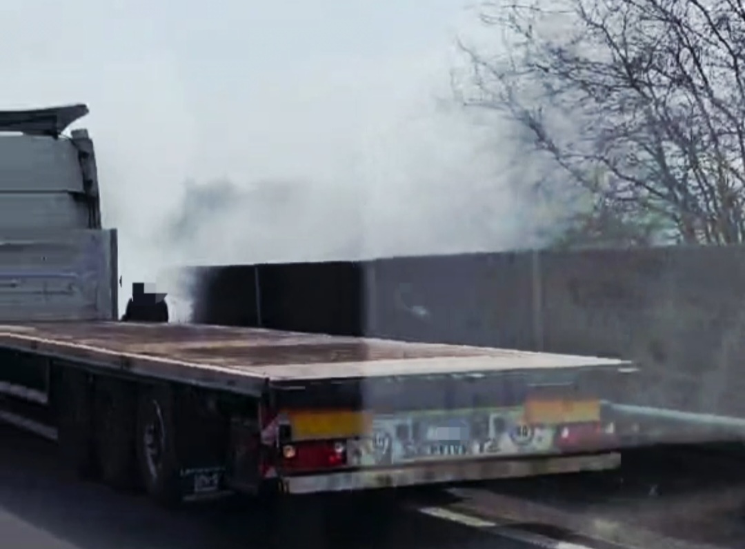 Kigyulladt egy nyerges vontató az M5-ös autópályán Kecskemét térségében.