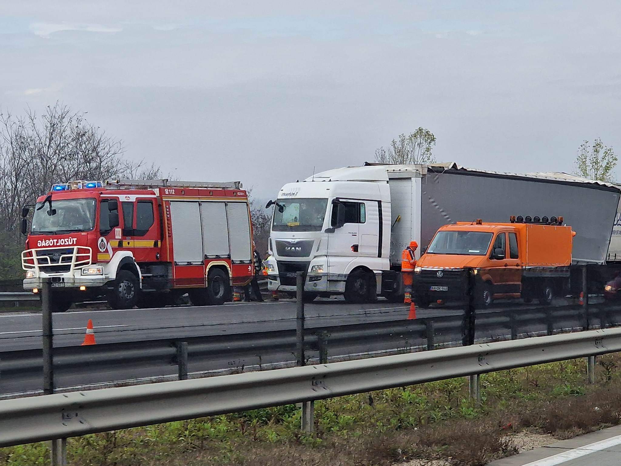 Kigyulladt egy személyautó az M2-es autóút Budapest felé vezető oldalán, Dunakeszi közelében, a 25. kilométernél.