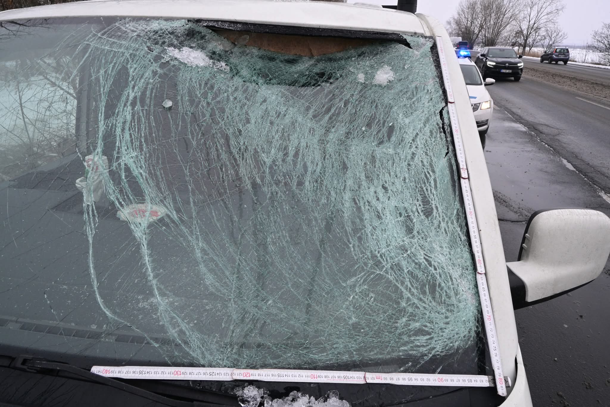 Tehergépjármű tetejéről lehulló jég okozott balesetet
