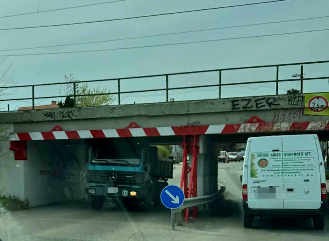 Megint beszorult egy teherautó a hírhedt híd alá!